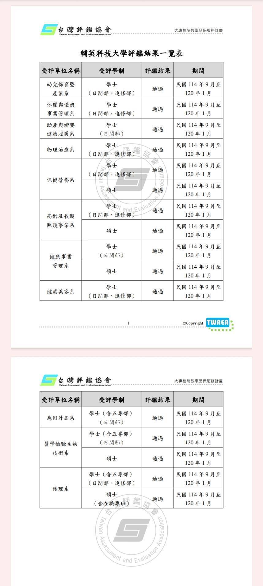 恭賀🎊本系全學制通過社團法人台灣評鑑協會【大專校院教學品保服務計畫認證】